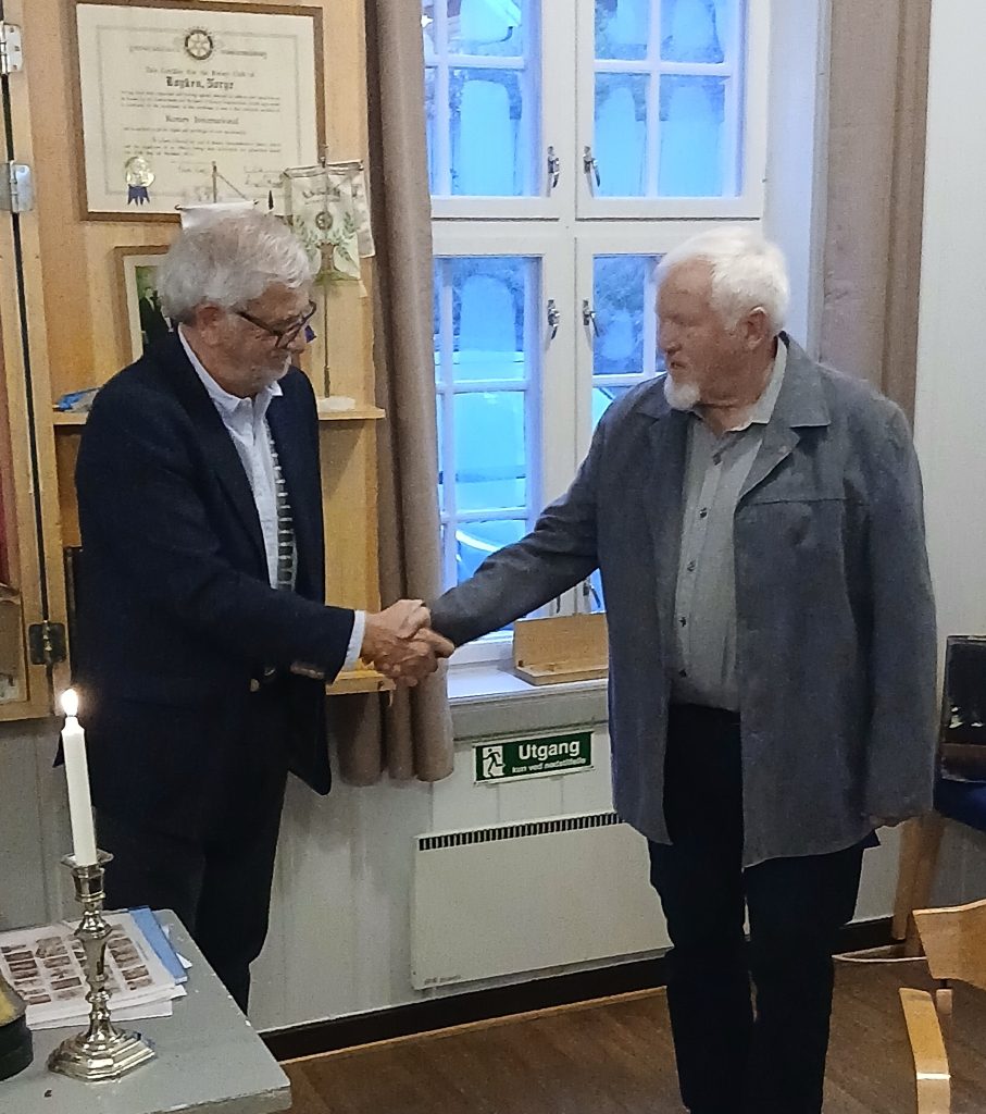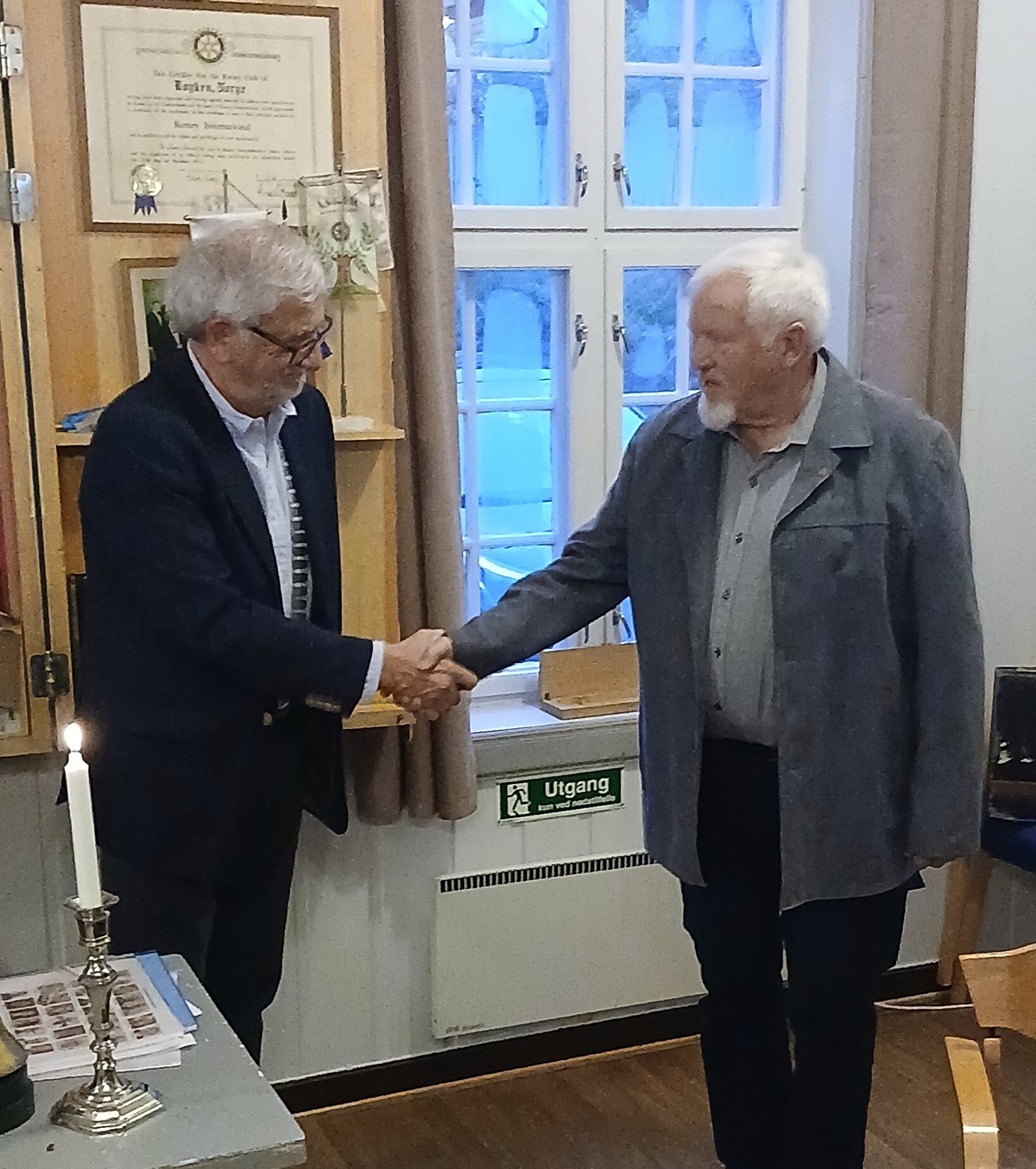 Bjørnar Buøy ble høytidelig tatt opp som klubbmedlem og ønsket velkommen av president Arnulv Lemme.
