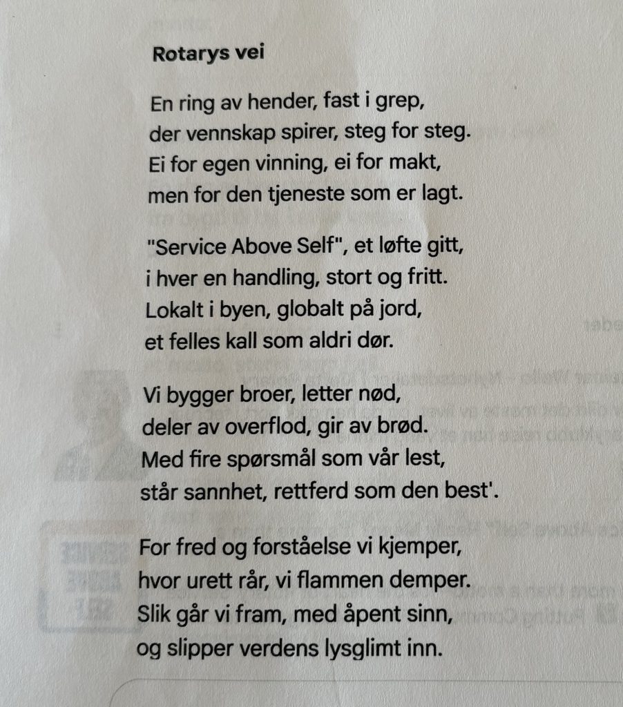 Nye medlemmer i Røyken Rotaryklubb Publisert 02/11/2025 av Åge Borg-Andersen 03.11.2025 Jørn Erik Swift er gledelig tilbake som medlem i Røyken RK. Jørn fikk med seg et dikt, deklamert av presidenten: Rotarys vei. AI-generert 06.10.2025 Bjørnar Buøy ble høytidelig tatt opp som klubbmedlem og ønsket velkommen av president Arnulv Lemme.