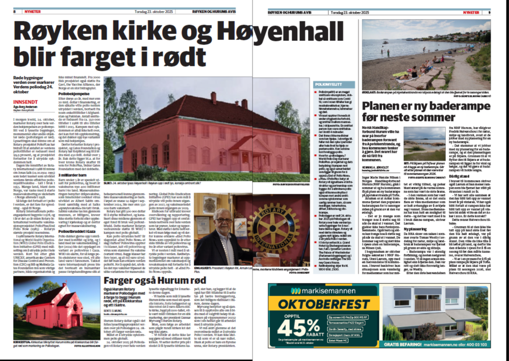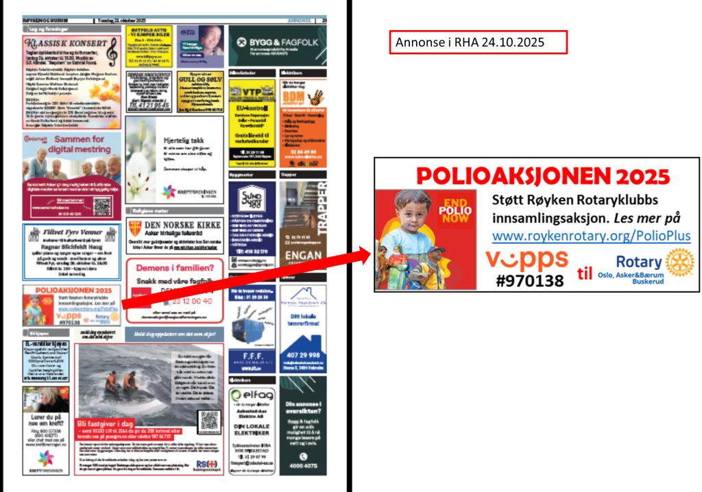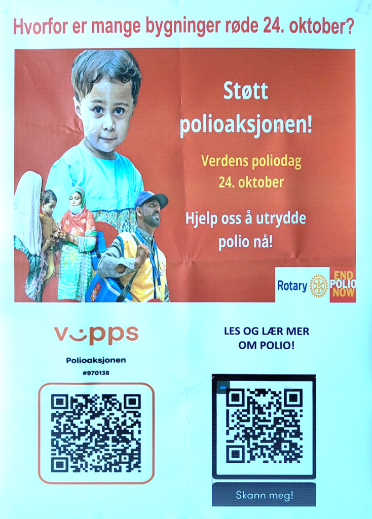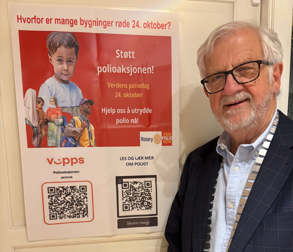 «Så lenge det fortsatt er polio i verden, er det fare for spredning – også til Norge. Derfor fortsetter vi i Rotary å støtte arbeidet med å utrydde polio – gjennom vaksinering.»