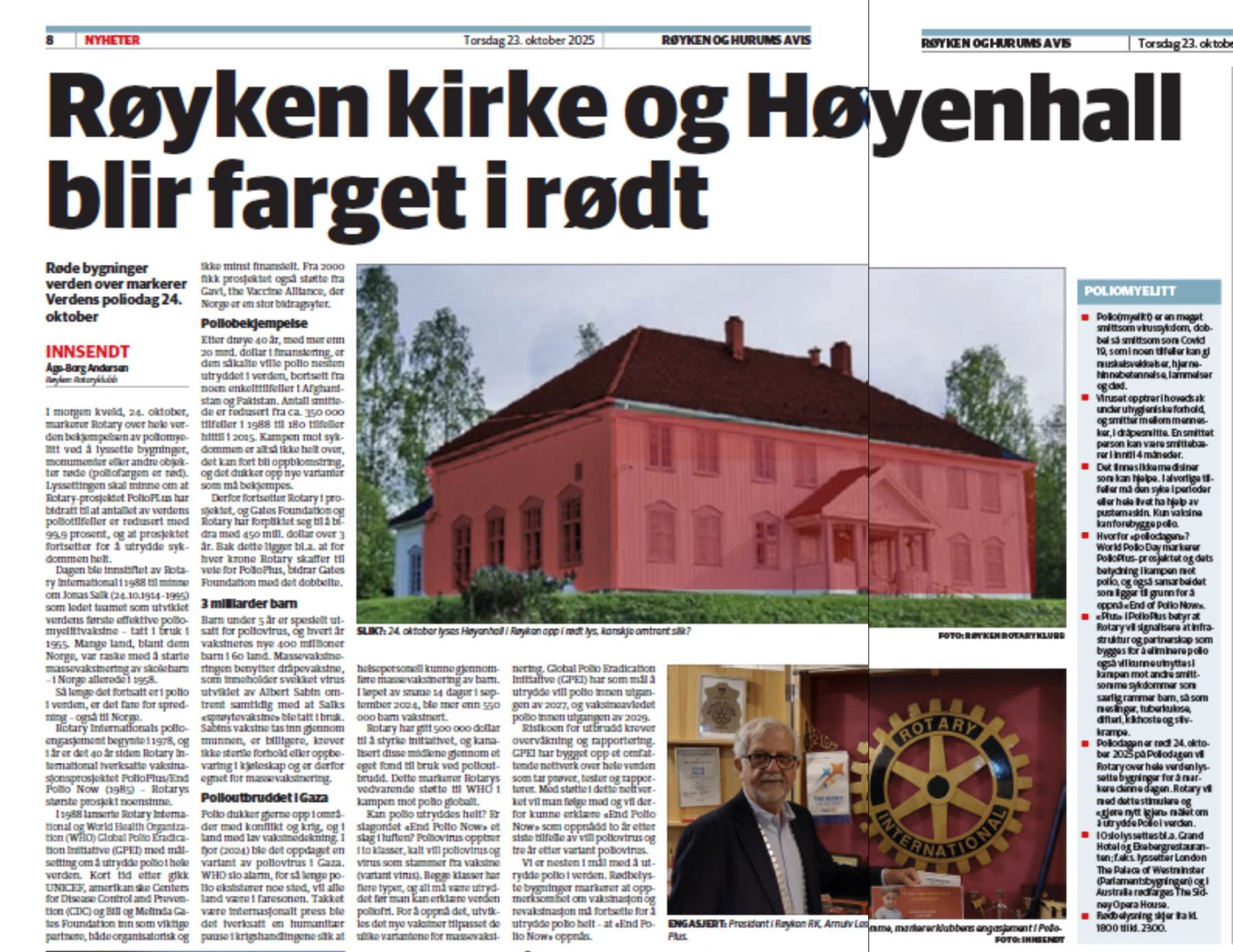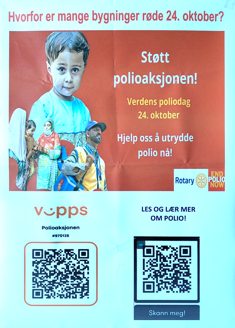 «Så lenge det fortsatt er polio i verden, er det fare for spredning – også til Norge. Derfor fortsetter vi i Rotary å støtte arbeidet med å utrydde polio – gjennom vaksinering.»